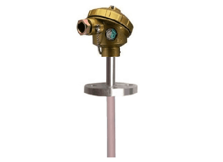 WRP-421表示S分度固定法兰带防溅式接线盒,保护管直径25mm的铂铑热电偶,可为双支。
